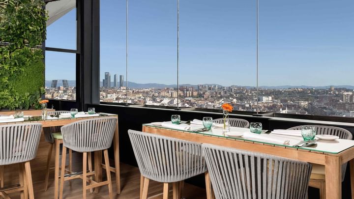 En la última planta de uno de los hoteles más bonitos de Madrid, el Puerta de América, se encuentra The Observatory, un restaurante-mirador donde su principal atractivo son las vistas del SkyLine de Madrid. Eso mezclado con una decoración cuidada, un jardín vertical y una carta que tiene toques de alta cocina hacen de este sitio un lugar para una comida agradable o una cena romántica.