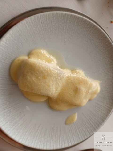 - Lubina al Vapor sobre una Velouté cítrica: cocinado de 10, punto justo de cocción para darle un toque suave.